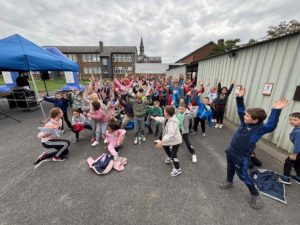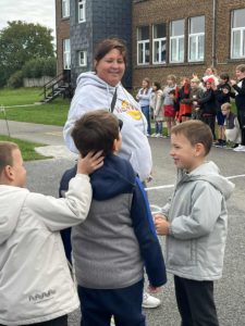 Aujourd’hui, tous les élèves du primaire étaient motivés pour courir et s’encourager à faire le plus de km possibles et voir jusqu’où ils pouvaient arriver ensemble. 🏃‍♀️🏃🏃‍♂️