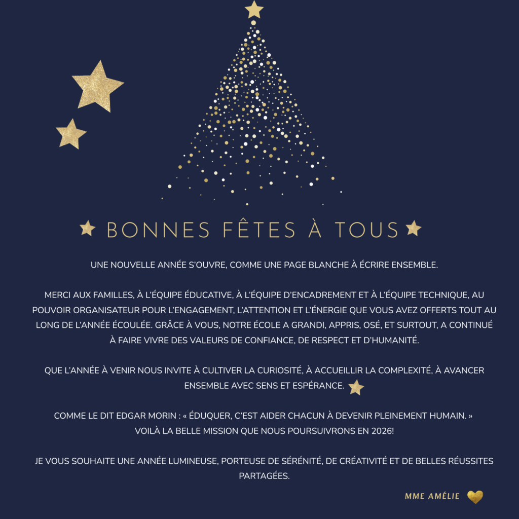 Une ambiance féerique, festive 🎁🎄 et surtout pleine d’émotion grâce aux magnifiques voix de nos élèves 🎤💖Des instants suspendus, des frissons, des sourires… que du bonheur 🥹✨ 🙏 Merci à vous tous d’avoir participé si nombreux et d’avoir contribué à faire de cet événement un souvenir inoubliable 💫La magie de Noël était vraiment au rendez-vous 🎄⭐ 💖🎶✨